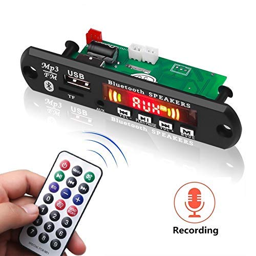 You need an amplifier Board & Speaker to use this Module. Bluetooth FM USB MP3 Audio Board with LCD Display With IR Remote Control: Yes With the LINE input (AUX) Song Number Display: Yes Support: Bluetooth/ FM/ USB/ MP3/ AUX/ SD Frequency Range: 87.5-108MHZ Led Seven Seg Display Support: 32-320 kbps MP3 Songs Support: FAT 32, FAT 16 File System External Antenna Connection for FM PLEASE NOTE THAT DESIGN, SHAPE & COLOR MAY VARY FROM THE PICTURE SHOWN ABOVE. This unit is used to feed an amplifier, from the amplifier you can drive Speaker. Do not connect Speakers Directly to this UNIT. Power & Output Specification: Input Supply: 5V (You can use regulator IC LM7805 to bring the supply to 5V) S/N: 65dB Distortion: 0.2% Output: 550 mV Separation: 45 dB Auto-Search Station: 22-28 dB Frequency Response: (90HZ~15KHZ) Dimensions: Length: 41mm Width: 32mm Features: You need Amplifier Board & Speaker to use this Module. Bluetooth FM USB MP3 Audio Board with LCD Display With IR Remote Control: Yes With the LINE input (AUX) Song Number Display: Yes Support: Bluetooth/ FM/ USB/ MP3/ AUX/ SD Frequency Range: 87.5-108MHZ Led Seven Seg Display Support: 32-320 kbps MP3 Songs Support: FAT 32, FAT 16 File System External Antenna Connection for FM PLEASE NOTE THAT DESIGN, SHAPE & COLOR MAY VARY FROM THE PICTURE SHOWN ABOVE. This unit is used to feed an amplifier, from the amplifier you can drive Speaker. Do not connect Speakers Directly to this UNIT. Power & Output Specification: Input Supply: 5V (You can use regulator IC LM7805 to bring the supply to 5V) S/N: 65dB Distortion: 0.2% Output: 550 mV Separation: 45 dB Auto-Search Station: 22-28 dB Frequency Response: (90HZ~15KHZ) Dimensions: Length: 41mm Width: 32mm.