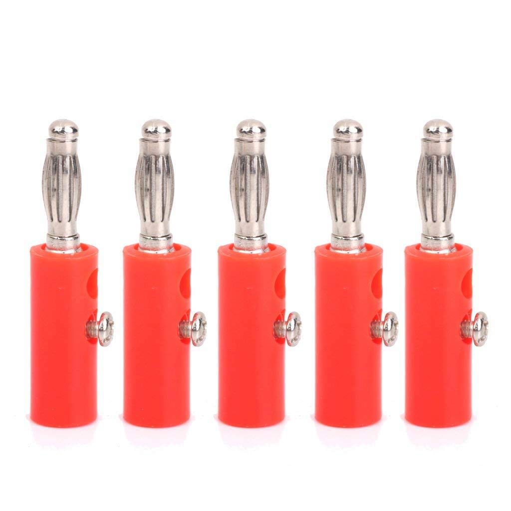 PGSA2Z 4mm Insulated Banana Plug Connectors (Pack of 10, Red & Black) – Gold-Plated, Screw Type for Multimeter, Power Supply, Speaker & Lab Use
