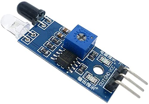 Infrared Obstacle Avoidance IR Sensor Module (Active Low) has a pair of infrared transmitting and receiving tubes. When the transmitted light waves are reflected back, the reflected IR waves will be received by the receiver tube. The onboard comparator circuitry does the processing and the green indicator LED comes to life. The module features a 3 wire interface with VCC, GND and an OUTPUT pin on its tail. It works fine with 3.3 to 5V levels. Upon hindrance/reflectance, the output pin gives out a digital signal (a low-level signal). The onboard preset helps to fine-tune the range of operation, the effective distance range is 2cm to 80cm.