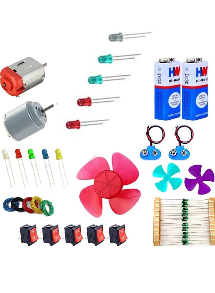 Project Experiment Kit, School-College Experiment (Fan Blade, DC Motor, 9V Battery, 2 LED, 1 m Wire, Battery Connector, Switch for Project, Science, DIY